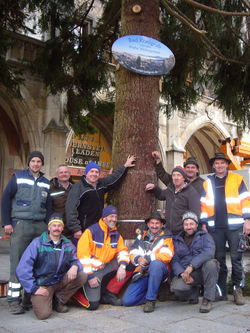 Um ca. 7 Uhr berührte der ca. 7,5 Tonnen und 27m hohe Baum Münchner Boden.